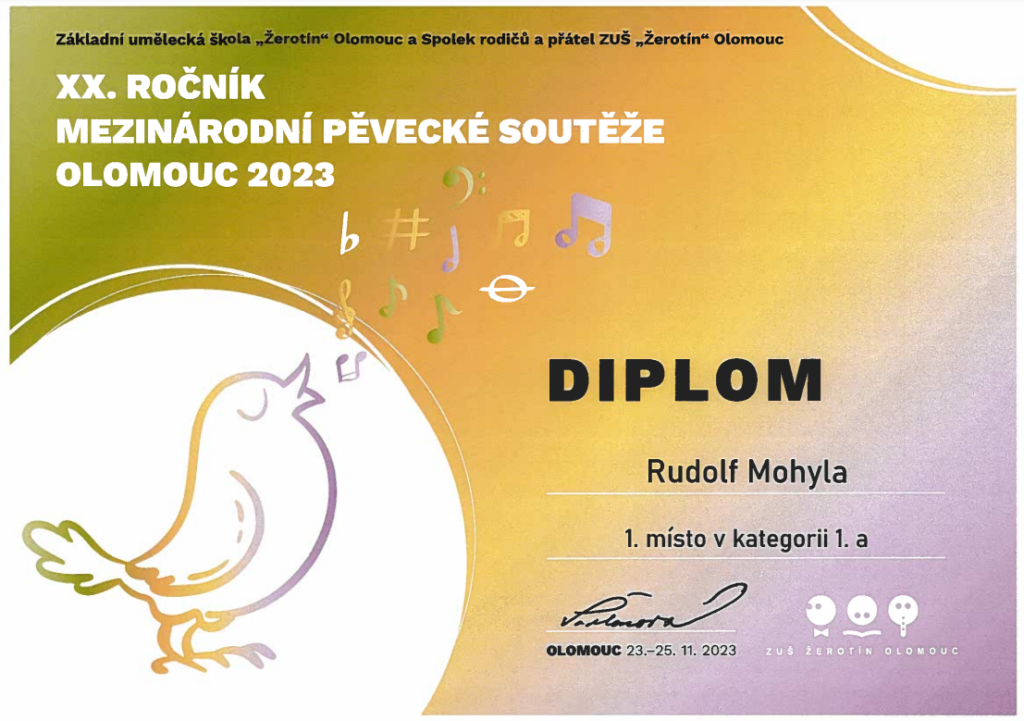 8 žáků pěveckého oddělení se zúčastnilo této pěvecké soutěže. Děkujeme všem za reprezentaci školy a gratulujeme k získaným umístěním. Děkujeme pedagogům M. Dvořákové, L. Polanskému, A. Procházkové, M. Jedličkové za přípravu.