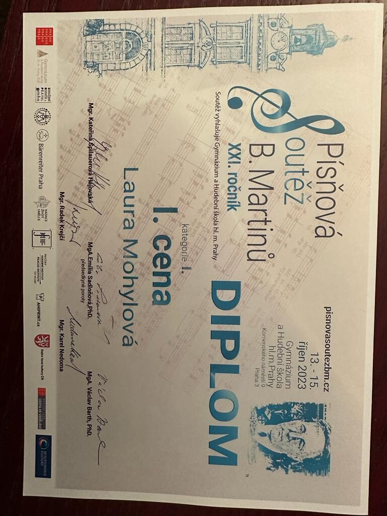 Gratulujeme Lauře k úspěchu a děkujeme za reprezentaci školy. Děkujeme vyučující M. Dvořákové za přípravu.