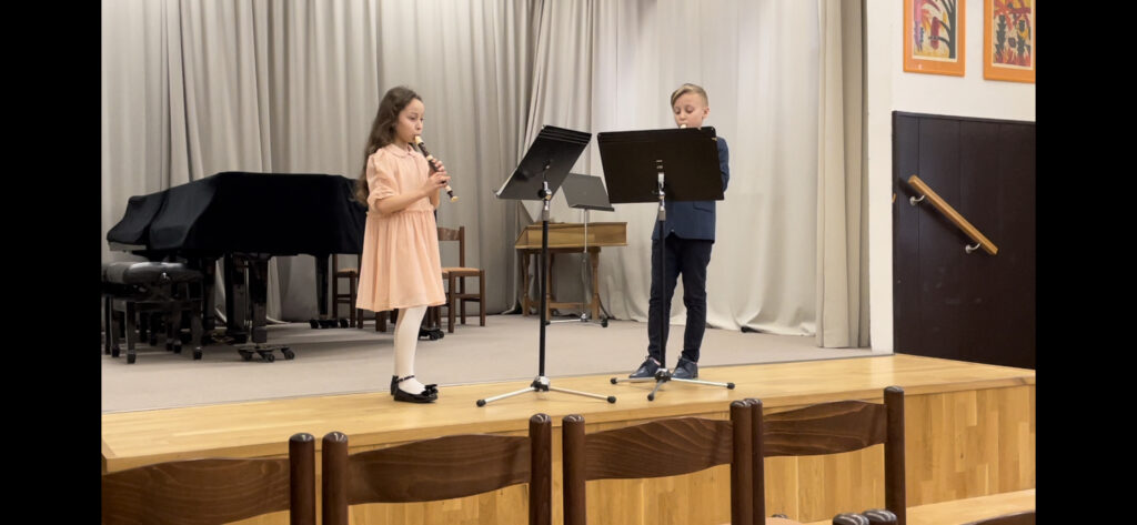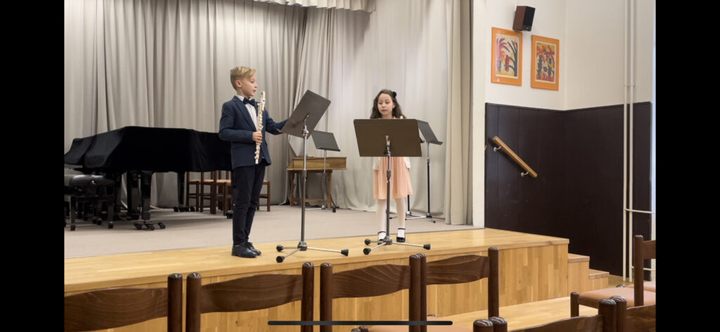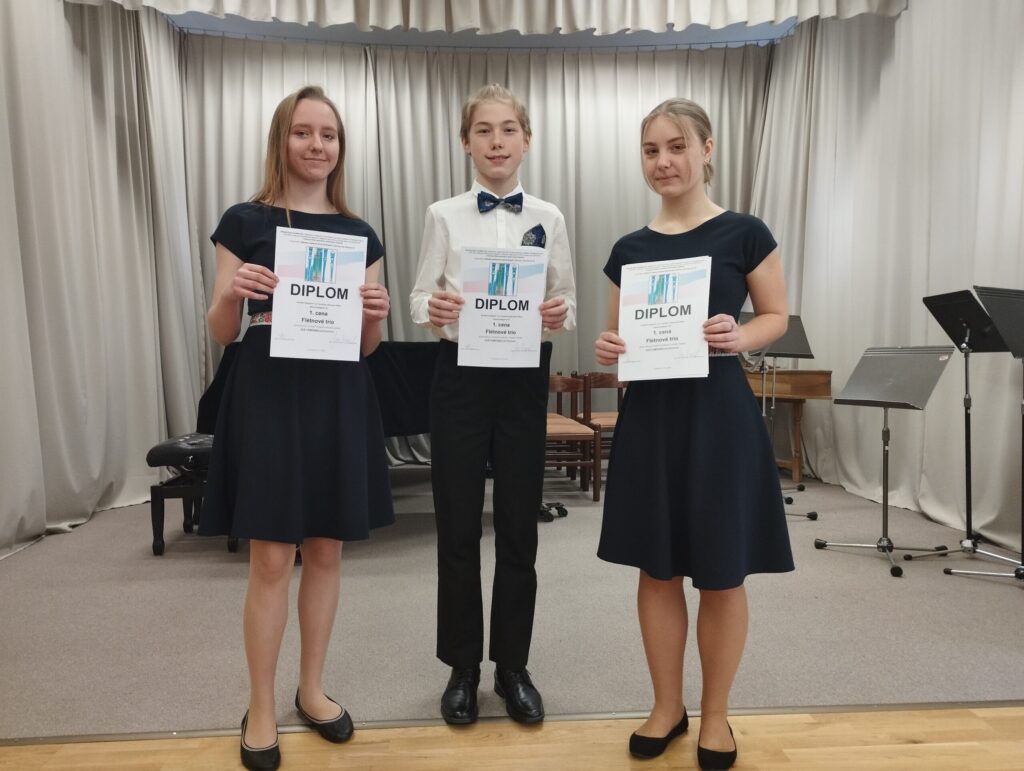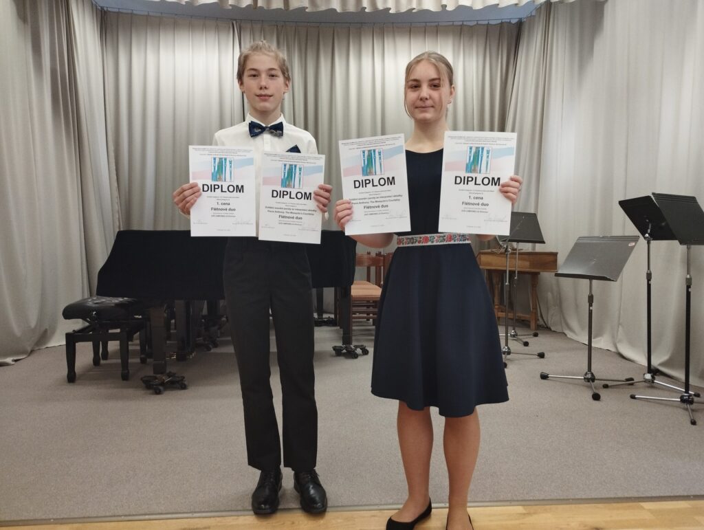 V krajském kole budou reprezentovat naši školu duo Klárka a František (zobcová flétna a příčná flétna) a duo Dana a František (zobcové flétny).